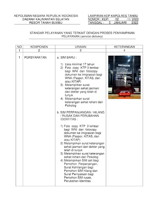 STANDAR PELAYANAN SIM SATPAS POLRES TANAH BUMBU